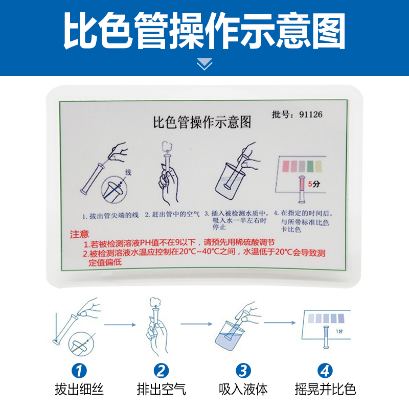 3、插入被检测水质中,吸入水至比色管约1/2处停止。