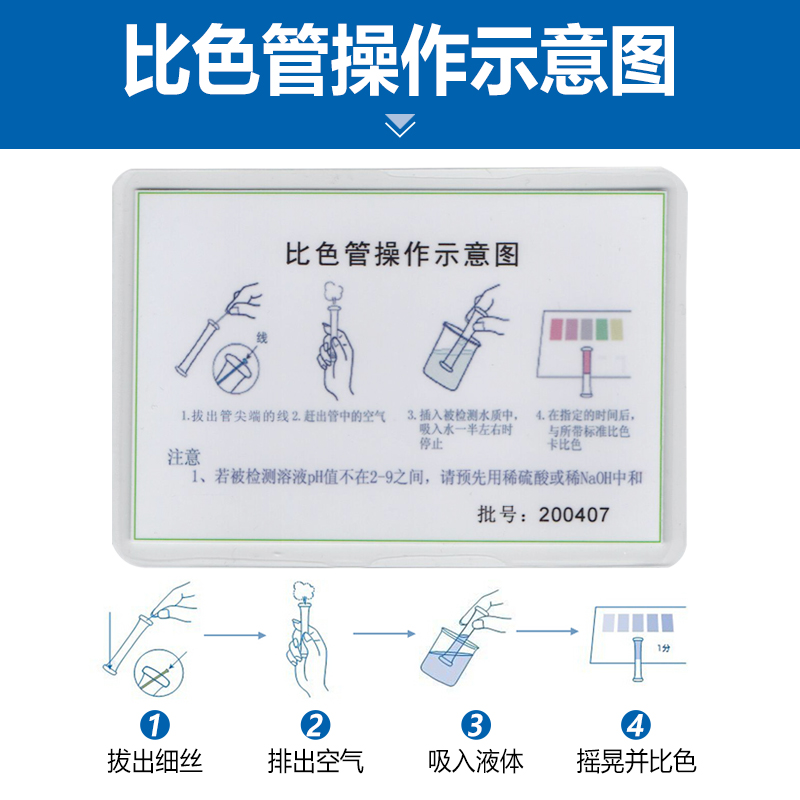 3、插入被检测水质中,吸入水至比色管约1/2处停止。