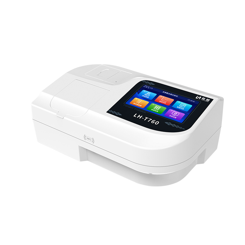 仪器由7寸触摸彩屏、LED光源、比色池、光电传感器、微处理器和微型打印机构成,可在液晶 屏幕和按键双模式操作,即刻显示出被测样品某个指标的含量,并能实时打印出分析结果。