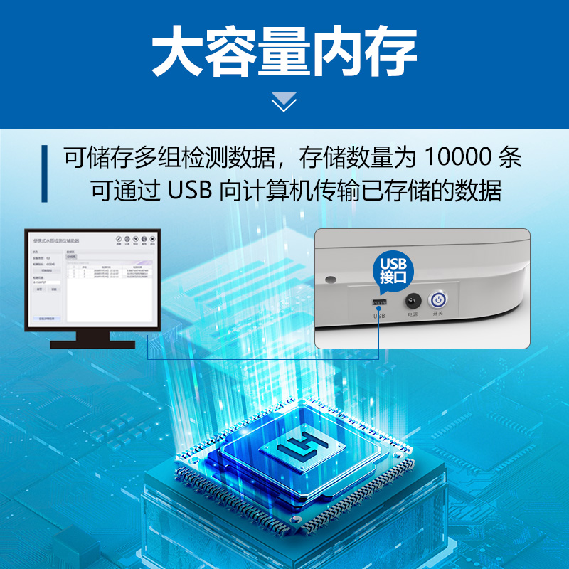 10、大容量内存,可测量多个检测项目和储存多组检测数据,存储数量为10000条。